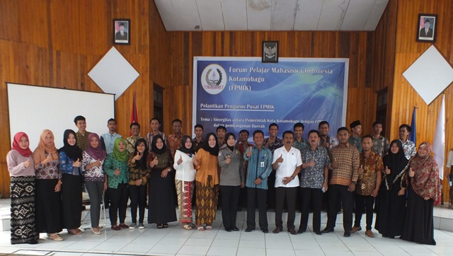 BOLMORA, ADVERTORIAL – Bertempat di Aula Kantor Wali Kota Kotamobagu, Jumat (13/1/2017), dilaksanakan pelantikan pengurus Forum Pelajar Mahasiswa Imdonesia Kotamobagu (FPMIK).