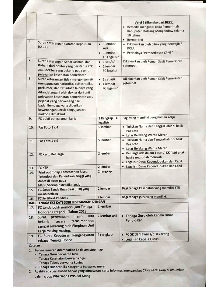 Berikut Ini Berkas yang harus didsiapkan oleh CPNS Bolmong