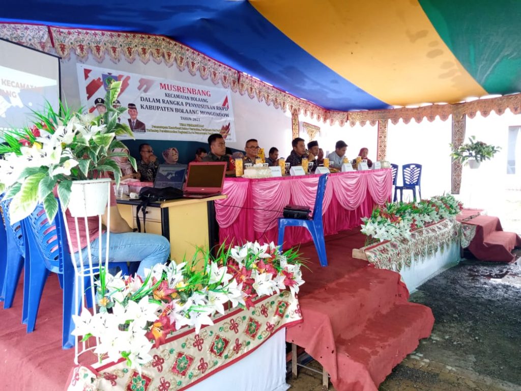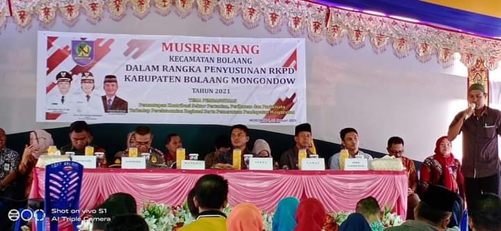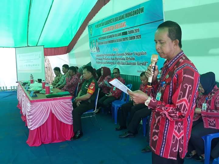 Musrembang di Kecamatan Bolaang mengangkat tema “Pembangunan Pemantapan Kontribusi Sektor Pertanian, Perikanan dan Pariwisata Terhadap Perekonomian Regional Serta Pemerataan Pendapatan Masyarakat”.