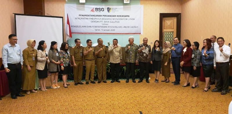 Untuk penadatanganan kerja sama dengan Bank SulutGo, tentang pengelolaan anggaran Rekening Kas Umum Daerah (RKUD) Tahun 2020, dilaksanakan di Swiss Bell Hotel Manado, oleh Bupati Bolmut Drs. Hi Depri Pontoh, dan Direktur Utama (Dirut) Bank SulutGo Jeffry A.M. Dendeng.