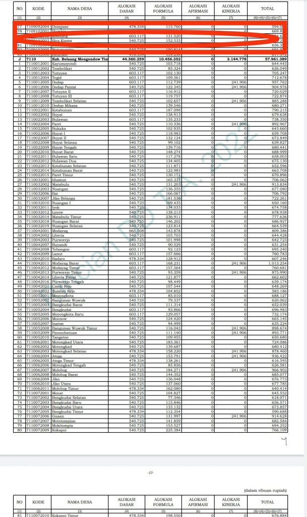 BOLMORA.COM , BOLTIM – Besaran Dana Desa (Dandes) yang dikucurkan oleh pemerintah pusat kepada desa di Indonesia mengalami penurunan secara merata di seluruh desa, tak terkecuali di Kabupaten Bolaang Mongondow Timur, (Boltim), Provinsi Sulawesi Utara.