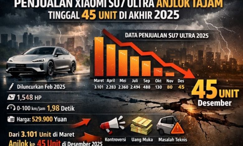 Penjualan Xiaomi SU7 Ultra merosot tajam menjelang akhir 2025. Mobil listrik performa tinggi milik Xiaomi Auto itu hanya membukukan 45 unit penjualan pada Desember 2025, jauh dari capaian puncaknya di awal tahun.
