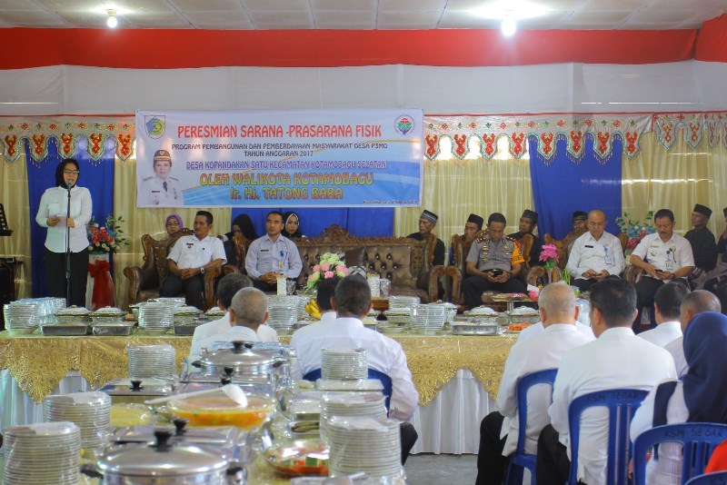 BOLMORA, KOTAMOBAGU – Jika sebelumnya, Wali Kota Kotamobagu Tatong Bara, sudah meresmikan beberapa bangunan dan proyek fisik di beberapa desa, maka Rabu (7/2/2018) kemarin, giliran sejumlah proyek fisik yang berasal dari anggaran Alokasi Dana Desa (ADD) dan Dana Desa (Dandes) di Desa Kopandakan l, Kecamatan Kotamobagu Selatan, diresmikan.