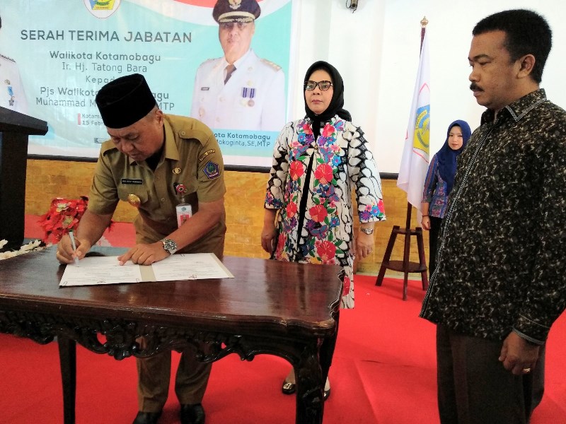 BOLMORA, KOTAMOBAGU – Pemerintah Kota (Pemkot) Kotamobagu melaksanakan serah terima jabatan wali kota, dari Tatong Bara ke Penjabat sementara (Pjs) Muhammad Rudi Mokoginta, Kamis (15/2/2018), bertempat di Aula Rudis Wali Kota Kotamobagu.
