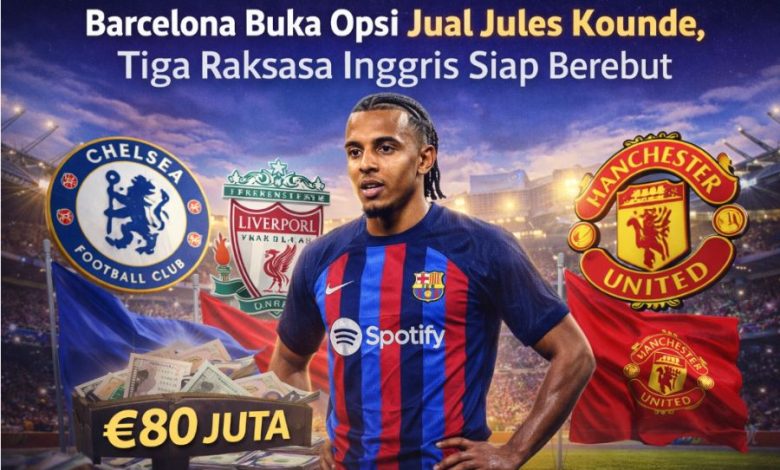 Barcelona membuka peluang menjual Jules Kounde pada bursa transfer musim panas. Klub Catalan memasang harga sekitar €80 juta untuk bek internasional Prancis tersebut. Langkah ini langsung memancing minat tiga klub besar Inggris: Chelsea, Liverpool, dan Manchester United.