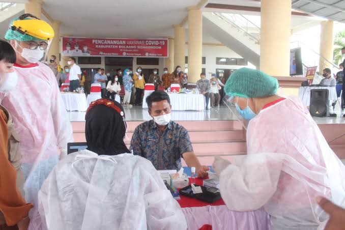 Dalam gelombang pertama vaksinasi menyasar para petugas tenaga kesehatan (nakes). Di mana Pemkab Bolmong menerima 2.000 vial vaksin Covid-19 dari Dinas Kesehatan Pemprov Sulut.