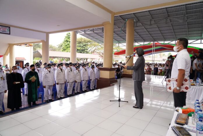 Bupati Yasti dalam sambutannya mengatakan, pihaknya yakin dan percaya seluruh Sangadi yang telah dilantik dapat melaksanakan tugas dan jabatan sesuai perundang-undangan yang berlaku.
