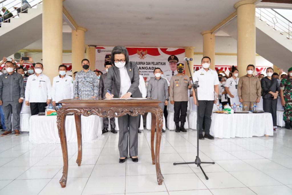 ADVERTORIAL, BOLMONG — Bupati Kabupaten Bolaang Mongondow (Bolmong) Yasti Soepredjo Mokoagow resmi melantik dan mengambil sumpah jabatan kepada 96 Sangadi terpilih.