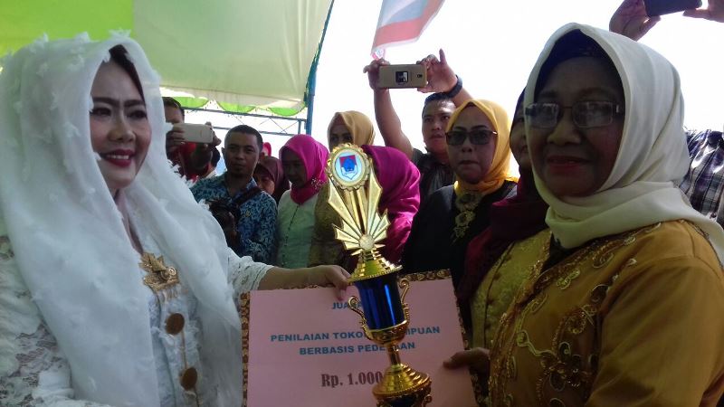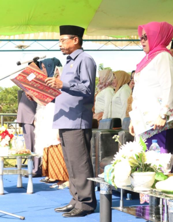 Setelah pelaksanaan upacara, Ketua TP-PKK Boltim Ny. Nursiwin Landjar Dunggio, memberikan penghargaan kepada 11 perempuan yang diutus dari seluruh kecamatan se-Kabupaten Boltim.(adve/ayax vay)
