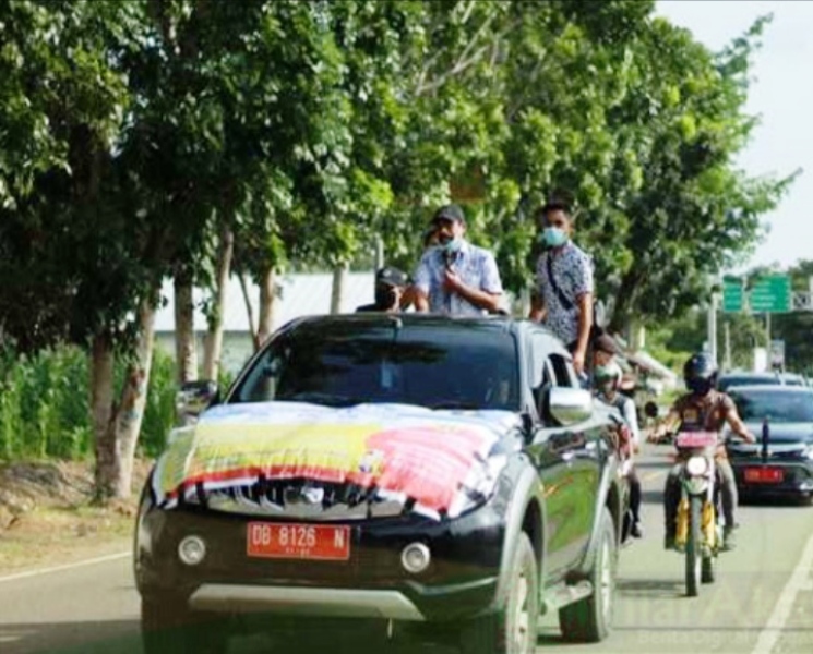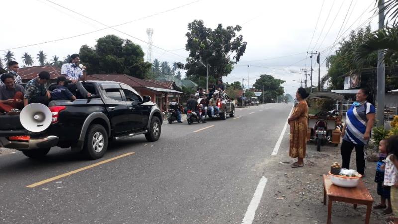 Sosialisasi dengan menggunakan mobil serta pengeras suara ini, guna memberitahukan kepada masyarakat bagaimana cara pencegahan virus Covid-19 tersebut.