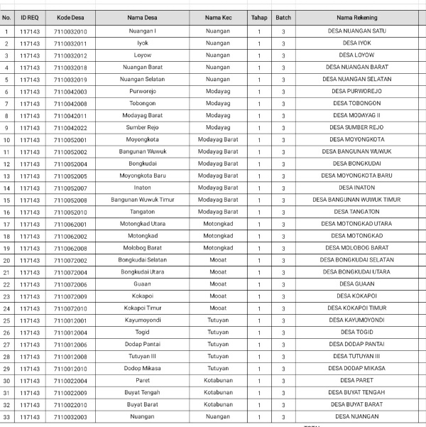 BOLMORA.COM , BOLTIM – Sebanyak 33 desa di Kabupaten Bolaang Mongondow Timur (Boltim) sudah melakukan pencairan Dana Desa (Dandes), menyusul 14 desa yang telah cair pada pekan lalu.