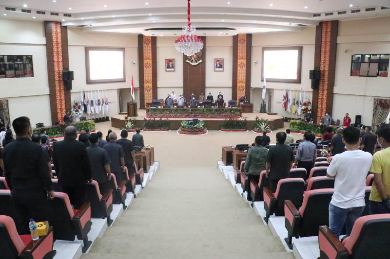 “Setelah melakukan pembahasan dengan seluruh perangkat daerah, yang melakukan peninjauan lapangan atas kinerja dari perangkat daerah, maka DPRD menunjukkan bahwa penyelenggaraan tugas umum pemerintahan melalui penyelenggaraan urusan pemerintahan yang menjadi kewenangan daerah, dan telah dilaksanakan sesuai dengan aturan dan ketentuan yang berlaku,” ujarnya.
