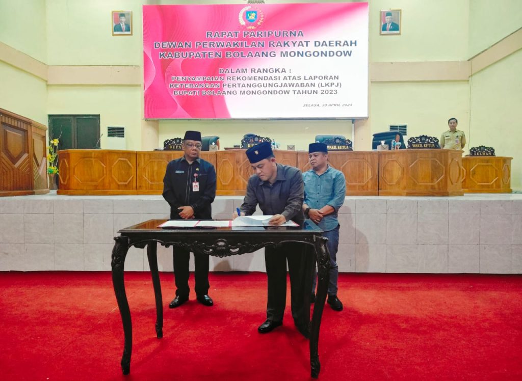 BOLMORA.COM, BOLMONG – Dewan Perwakilan Rakyat Daerah (DPRD) Kabupaten Bolaang Mongondow (Bolmong) menggelar rapat paripurna dalam rangka penyampaian rekomendasi DPRD atas laporan keterangan pertanggungjawaban (LKPJ) Bupati Bolaang Mongondow Tahun 2023.