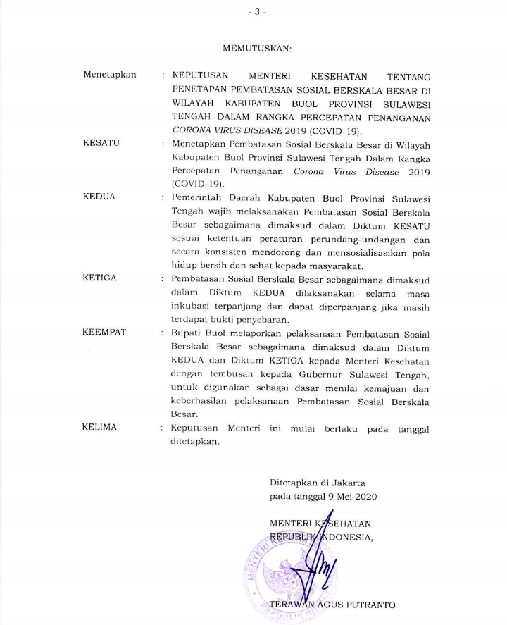 Berikut Surat Keputusan PSBB Kabupaten Buol
