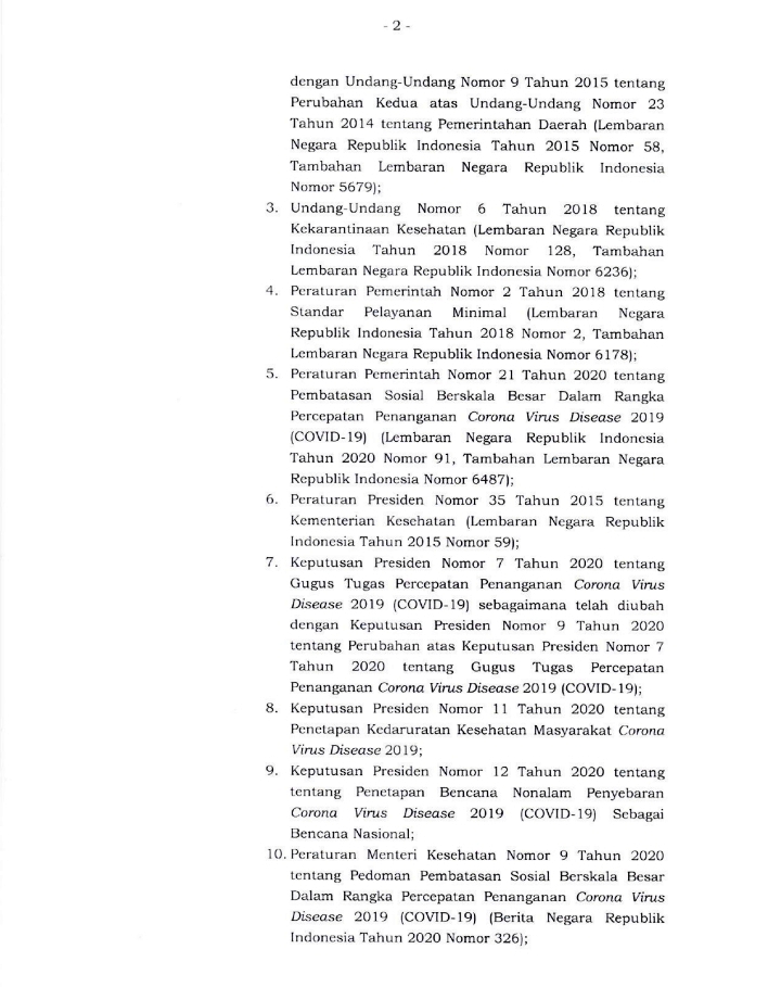 Keputusan tersebut berdasarkan Surat Keputusan Menteri Kesehatan Nomor: HK.01.07/Menkes/300/2020, yang ditanda tangani Menkes Terawan Agus Putranto, pada 9 Mei 2020.