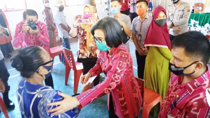 Usai melakukan sambutan Bupati Yasti secara simbolis menyerahkan dana BST kepada masyarakat yang hadir.