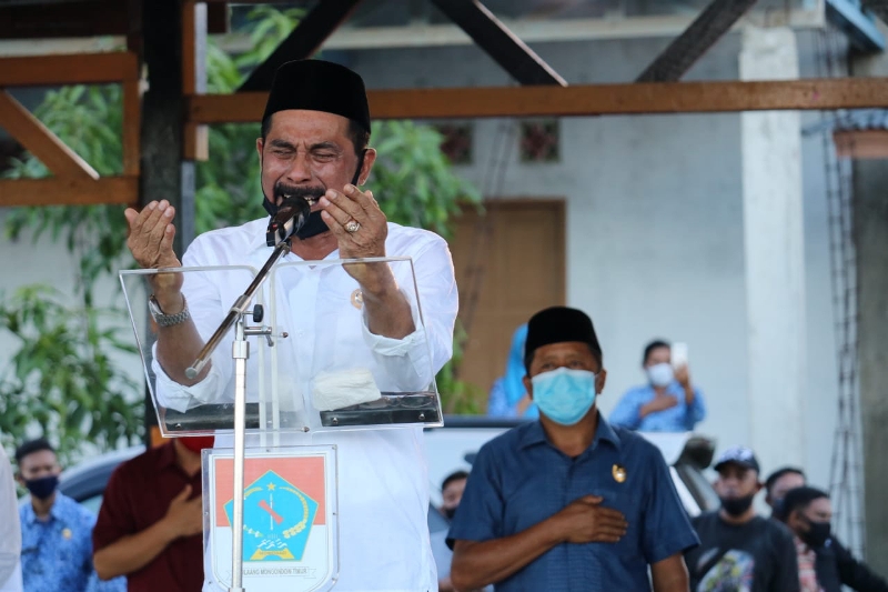 “Negara kita sedang dalam keadaan sakit karena dampak Covid-19 yang mempengaruhi aspek keuangan. Saya harus berani terbuka, dan saya juga menginginkan insha Allah presiden serta para menteri tidak menutupi tentang keadaan negara kita. Karena, negara kita sedang terancam. Saya yakin kalian semua akan bejuang dengan nyawa untuk negara ini,” ucap bupati.