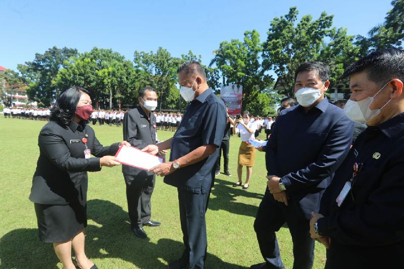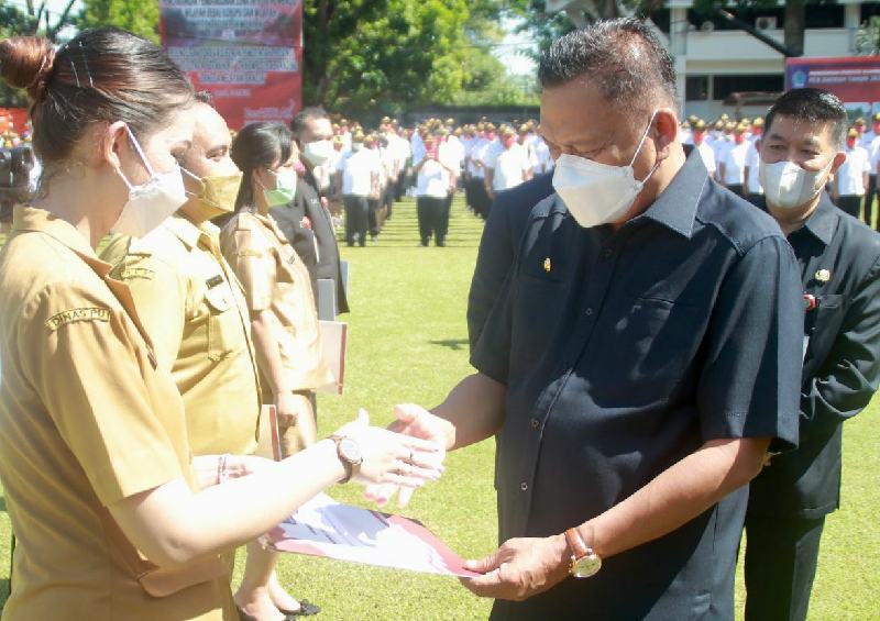 Upacara yang dikomandoi oleh Kabag Chres Sondakh tersebut, jugaa dilaksanakan penyerahan penghargaan kenaikan pangkat secara simbolis oleh gubernur, kepada sejumlah pejabat. Antara lain Asisten I Setdaprov Denny Mangala, serta penyerahan surat keputusan (SK) Calon Pegawai Negeri Supil (CPNS) dan PPPK di lingkungan jajaran Pemprov Sulut.