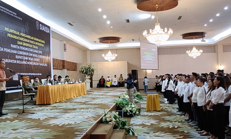 BOLMONG – Dalam kegiatan pelantikan, pengambilan sumpah/janji, penandatanganan pakta integritas dan orientasi tugas oleh panitia pemungutan suara (PPS), pada pemilihan Gubernur dan Wakil Gubernur Sulawesi Utara serta Bupati dan Wakil Bupati Kabupaten Bolaang Mongondow tahun 2024.