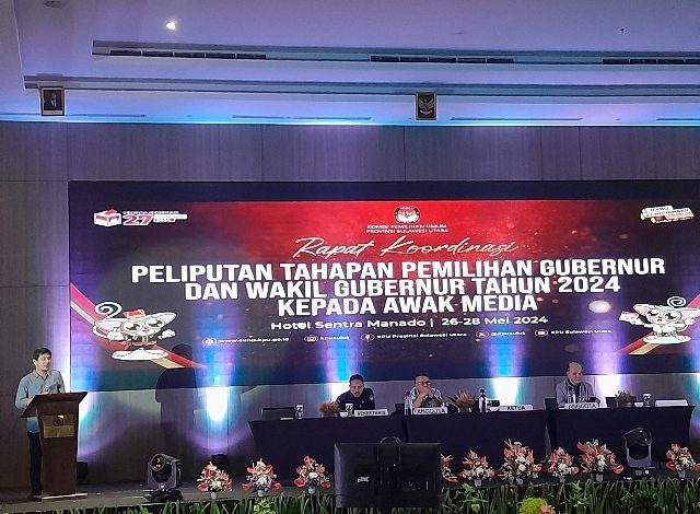 BOLMORA.COM, SULUT – Komisi Pemilihan Umum (KPU) Provinsi Sulawesi Utara selama tiga hari melaksanakan rapat koordinasi (Rakor) bersama media dalam rangka Peliputan Tahapan Pemilihan Gubernur dan Wakil Gubernur Tahun 2024 di Hotel Sentra Kabupaten Minahasa Utara.