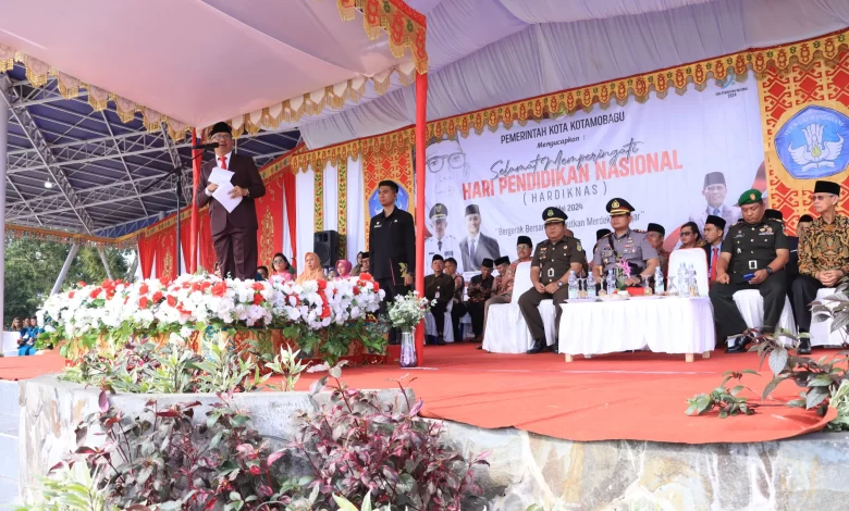 KOTAMOBAGU – Penjabat (Pj) Wali Kota Kotamobagu, Dr. Drs. Hi. Asripan Nani., M.Si menjadi Inspektur Upacara (Irup) pada peringatan Hari Pendidikan Nasional (HPN) tahun 2024, bertempat di Lapangan Alun-alun Boki Hontinimbang Kotamobagu, Senin (6/5/2024).