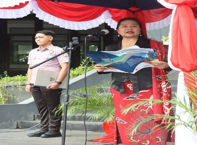 Pun, Direktur Polimdo di upacara membacakan amanat Menteri Pendidikan Tinggi, Sains, dan Teknologi Republik Indonesia Prof. Brian Yuliarto.