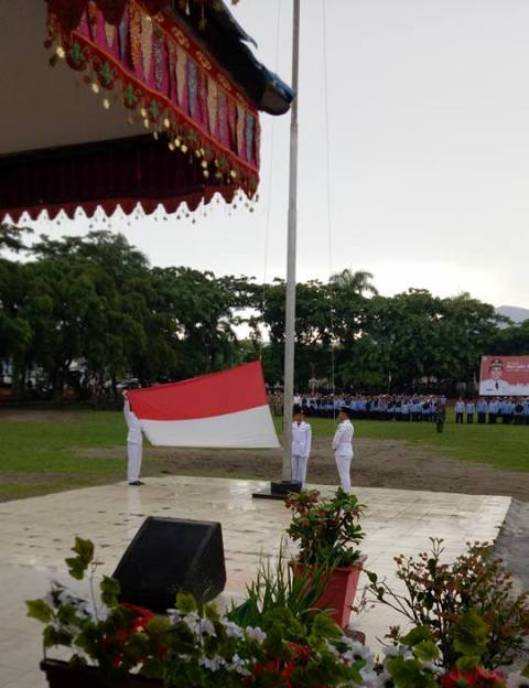 BOLMORA, ADVETORIAL – Pemerintah Kota (Pemkot) Kotamobagu melaksanakan upacara dalam rangka memperingati Hari Lahir Pancasila, yang bertema ‘Saya Indonesia, Saya Pancasila’ di Lapangan Boki Hontimbang Kotamobagu, Kamis (1/6/2017).