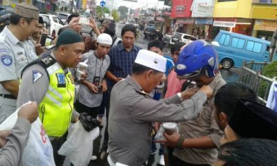 “Kami sengaja melaksanakan kegiatan ini guna mensosialisasikan tata cara berlalu lintas deni keselamatan pengendara bermotor, sekaligus mengucapkan selamat menjalankan puasa Ramadhan 1438 Hijriyah, dengan membagikan 250 Takjil kepada masyarakat,” ujar Kastlantas AKP. Arke Parasan.