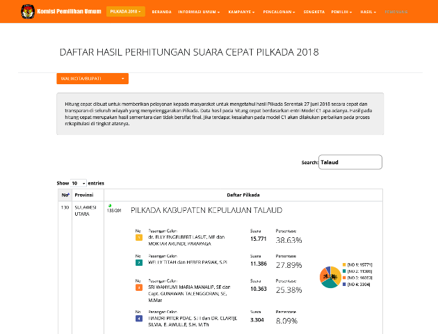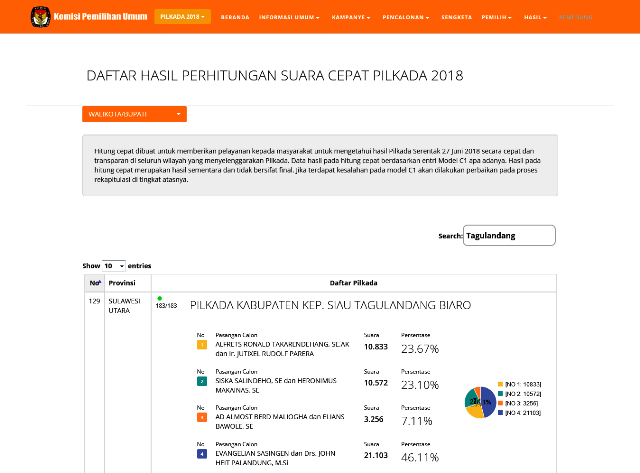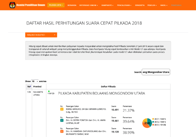 BOLMORA, POLITIK – Komisi Pemilihan Umum (KPU) di enam daerah yang menggelar pemilihan kepala daerah (Pilkada) serentak di Provinsi Sulawesi Uatara (Sulut) sudah mengentry model C1 mereka di situs resmi KPU pusat, yakni infopemilu.kpu.go.id