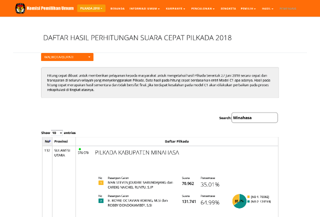 Berikut Ini Gambar Hasil Perolehan Suara Sementara Paslon di Masing-Masing Daerah di Sulut Yang menggelar Pilkada:
