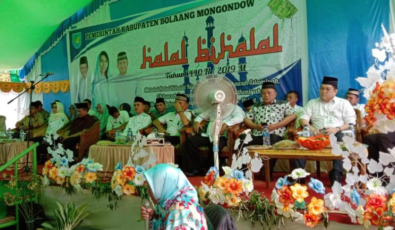 “Sesuai dengan makna di bulan Syawal ini sebagai bulan peningkatan maka saya mengajak kepada kita semua untuk menjadikan halal bihalal ini sebagai wahana dan sarana untuk lebih memperkuat komitmen dan tekad kita guna meningkatkan kualitas taaruf atau saling mengenal, tafahum atau saling memahami guna meningkatkan jalinan silaturahim diantara kita. Hal tersebut sangat diperlukan dalam rangka mewujudkan keberhasilan pembangunan dan kemasyarakatan di Kabupaten Bolmong,” tutupnya.