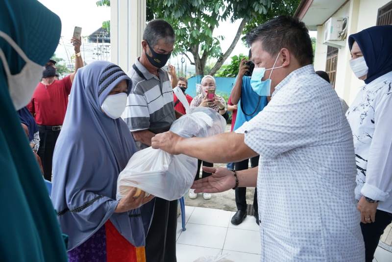 “Adapun bantuan ini terdiri dari, 10 Kg beras, 10 bungkus mie instan, 4 kaleng ikan tuna, 1 Kg gula pasir, 1 liter minyak kelapa, 1 dos teh dan kopi,” kata wali kota.