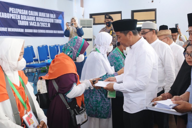 BOLMORA.COM , ADVERTORIAL – Bupati Bolaang Mongondow Timur (Boltim) Sam Sachrul Mamonto melepas keberangkatan 14 Jamaah Calon Haji (JSH) tahun 2022 ke Tanah Suci Makkah, Arab Saudi, Minggu (26/6/22).