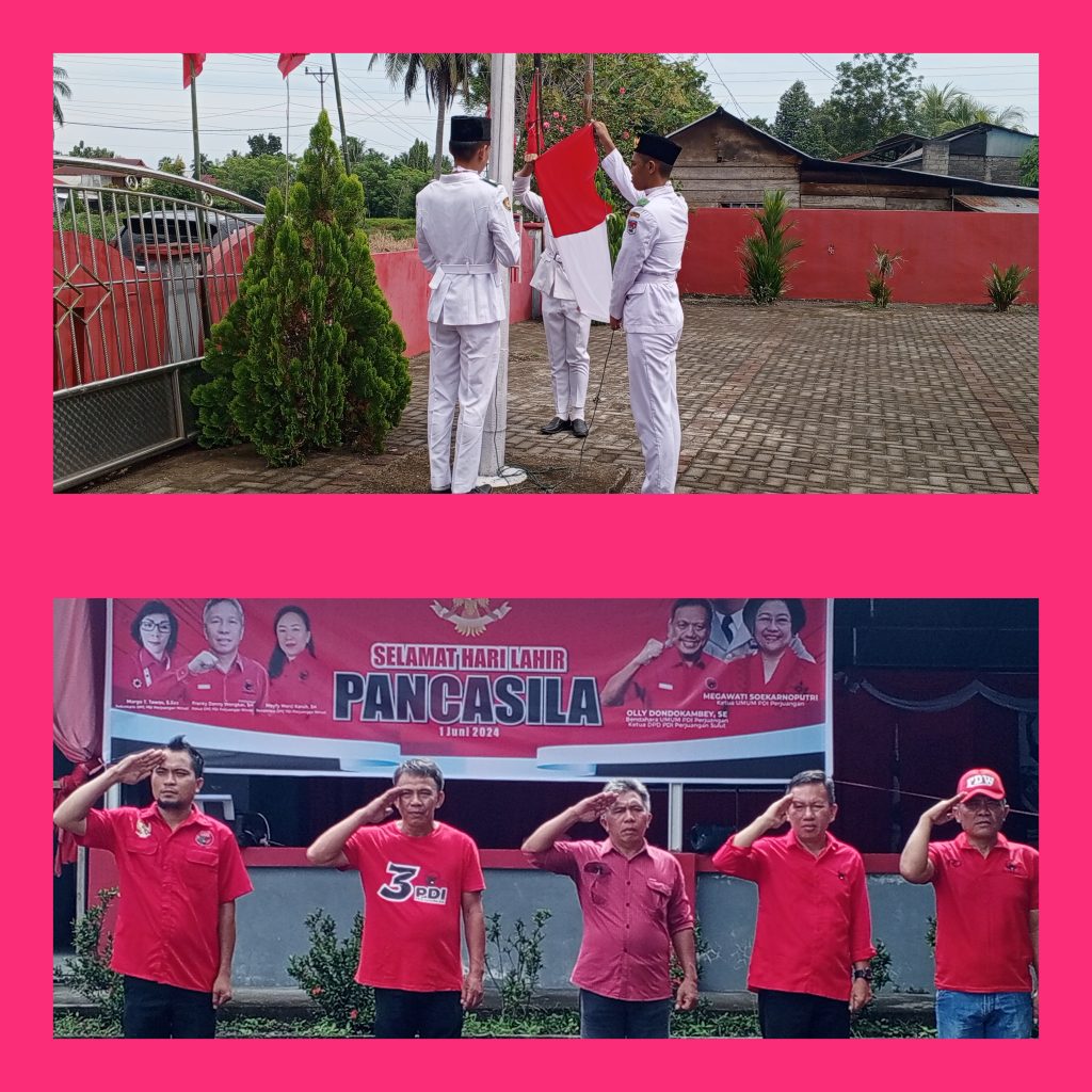 Upacara Bendera memperingati Hari lahirnya Pancasila kali ini diikuti oleh sejumlah pengurus DPC PDI-P dan Pengurus Ranting yang tersebar di seluruh Kabupaten MinSel.