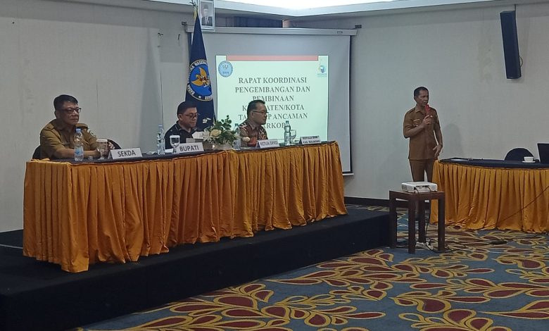 BOLMONG – Penjabat Bupati Bolaang Mongondow (Bolmong), dr. Jusnan C Mokoginta, menjadi narasumber di rapat koordinasi yang diselenggarakan oleh Badan Narkotika Nasional (BNN) Kabupaten Bolmong mengenai pengembangan dan pembinaan Kabupaten/Kota dalam menanggapi ancaman narkoba, Selasa, 4 Juni 2024.