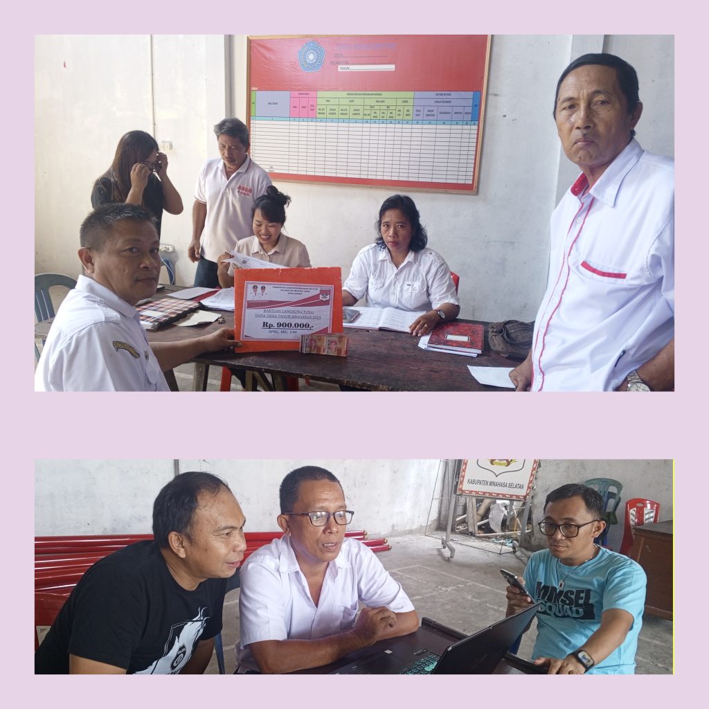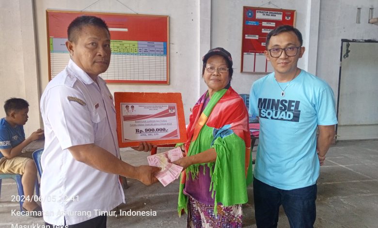 Penyerahan Bantuan Langsung Tunai (BLT) tersebut disaksikan oleh staf khusus Ketahanan Pangan Bapak Jootje Mogigir SH, pendamping Desa Kecamatan Amurang Timur dan perangkat Desa setempat.