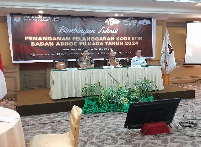 BOLMORA.COM, SULUT – Komisi Pemilihan Umum (KPU) Provinsi Sulawesi Utara melaksanakan kegiatan bimbingan teknis (Bimtek) terkait Penanganan Pelanggaran Kode Etik Badan Adhoc Pilkada 2024 di Hotel Grand Puri Manado.