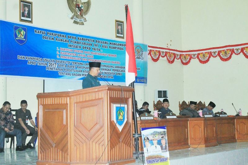 BOLMORA, ADVERTORIAL – DPRD Kabupaten Bolmong melaksanakan rapat paripurna dalam rangka pembicaraan tingkat I atas Ranperda inisiatif yaitu, Bantuan Hukum Bagi Masyarakat, Kabupaten Layak Anak, Pengendalian dan Penanggulanan Rabies, serta Ranperda usulan eksekutif tentang LPj pelaksanaan APBD Tahun 2017.