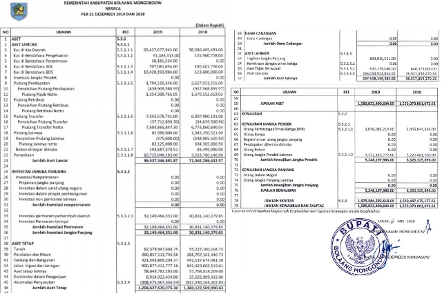 BOLMORA.COM, ADVERTORIAL — Pemerintah Kabupaten (Pemkab) Bolaang Mongondow (Bolmong) resmi mempublikasikan Laporan Keuangan Pemerintah Daerah (LKPD) tahun 2019 (Audited).