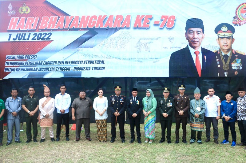 BOLMORA.COM , ADVERTORIAL – Bupati Bolaang Mongondow Timur (Boltim) Sam Sachrul Mamonto, S.Sos., M.Si., didampingi ketua TP PKK Ny Seska Ervina Budiman, S.Sos., menghadiri upacara rangkaian peringatan Hari Bhayangkara Ke-76 yang diselenggarakan oleh Polres Boltim, Selasa (5/7/2002).