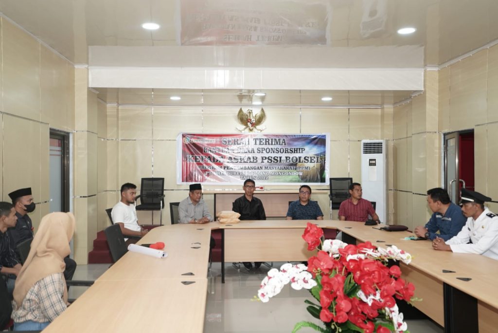 BOLMORA.COM, BOLSEL – Bertempat di kantor Bupati, Kompleks Perkantoran Panango Asosiasi Kabupaten Persatuan Sepakbola Seluruh Indonesia (Askab PSSI) Kabupaten Bolaang Mongondow Selatan (Bolsel), menerima bantuan dana PT J Resources Bolaang Mongondow (JRBM). Selasa (5/07/2022).