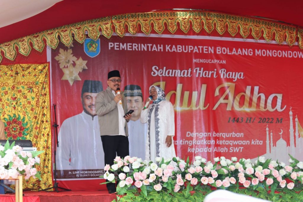 Limi Mokodompit dalam sambutannya mengatakan di kesempatana yang penuh berkah ini, seraya mengharapkan ridho dan rahmat dari Allah SWT, saya selaku pribadi, keluarga serta atas nama pemerintah Kabupaten Bolaang Mongondow menyampaikan ucapan selamat hari raya Idul Adha 10 Dzulhijah 1443 Hijriah.