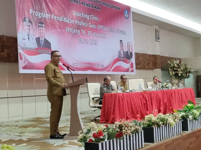 Kepala Dinas Pendidikan Bolmong Renti Mokoginta menjelaskan, Coaching clinic merupakan program pemerintah pusat melalui pendidikan propesi guru dalam jabatan tahun 2023 bagi satuan Pendidikan TK, SD, dan SMP di Kabupaten Bolmong.