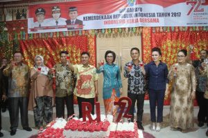 Pada malam resepsi kenegaraan yang digelar di rumah dinas bupati, Kamis (17/8/2017) tadi malam, bupati dan wakil bupati, bersama jajaran Pemkab Bolmong bersulang untuk merayakan hari kemerdekaan ke-72 Republik Indonesia (RI).