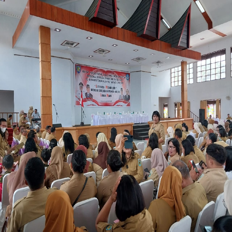 Sebelum sambutan, Kepala Dinas Pendidikan, Renti Mokoginta, terlebih dahulu menyampaikan keberadaan guru dan tenaga pendidik di Bolmong.
