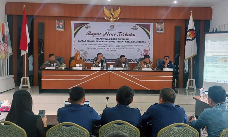 KOTAMOBAGU – Komisi Pemilihan Umum (KPU) Kotamobagu menggelar rapat pleno penetapan Daftar Pemilih Sementara (DPS) untuk pelaksanaan Pemilihan Kepala Daerah (Pilkada) Serentak Tahun 2024, pada Sabtu (10/8/2024).