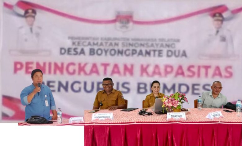 BOYONG PANTE DUA,_ Selasa 26 Agustus 2025. Bumdes “BINUANG INDAH” Desa Boyong Pante Dua Kecamatan Sinonsayang Kabupaten Minahasa Selatan , mendapatkan pembinaan sebagai bekal dalam melaksanakan program kerjanya, dan acara tersebut di laksanakan di BPU Desa tersebut.