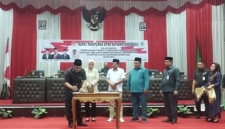 BOLMORA.COM, ADVERTORIAL – Dewan Perwakilan Rakyat Daerah (DPRD) bersama Pemerintah Kota Kotamobagu (Pemkot) meyepakati pembahasan Kebijakan Umum Anggaran dan Prioritas Plafon Anggaran Sementara (KUA-PPAS) Perubahan APBD Tahun 2022, dalam Rapat Paripurna yang dilaksanakan secara virtual di Gedung DPRD Kota Kotamobagu, Selasa, (27/9/2022). Kesepakatan tersebut berdasarkan penandatanganan Nota Kesepahaman antara tiga Pimpinan DPRD dan Walikota Ir. Hj Tatong Bara.