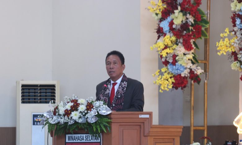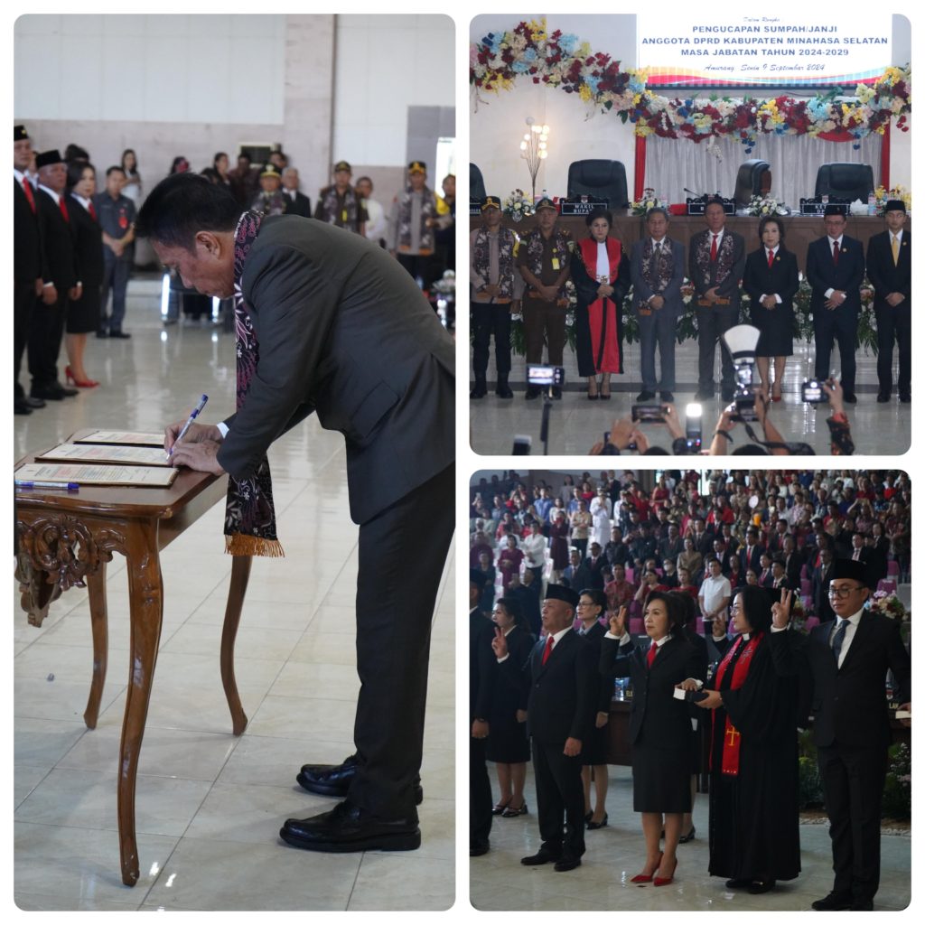 Dalam Kesempatan tersebut Bupati Minahasa Selatan. Franky Donny Wongkar, SH., membacakan Sambutan Menteri Dalam Negeri Pada Acara Pengucapan Sumpah/ Janji Anggota DPRD Kabupaten/Kota Masa Jabatan Tahun 2024 – 2029.