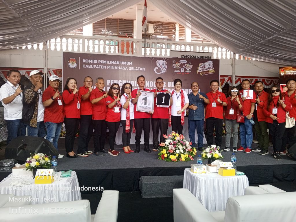Ketika mendapat nomor urut 1 Paslon FDW – TK langsung berpelukan erat yang membuat para pendukung dan yang hadir terkesima dan kemudian diikuti oleh gemuruh suara para pendukung yang mengiringi mereka ke Kantor KPU Kabupaten Minahasa Selatan.